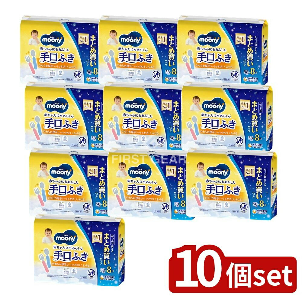 【10個セット】 ユニ・チャーム ムーニー手口ふき詰替58枚×8個 [単品内容量/464枚] | ム・・・