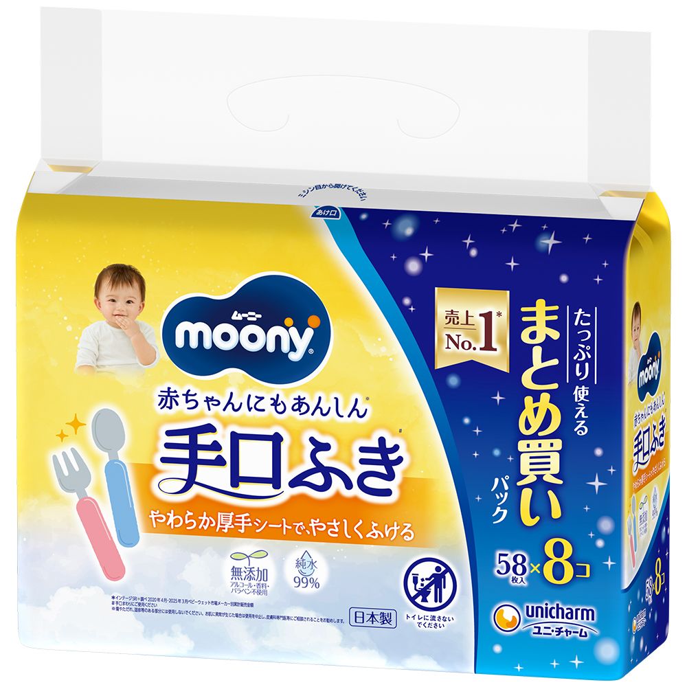 ユニ・チャーム ムーニー手口ふき詰替58枚×8個 [単品内容量/464枚] | ムーニー おしりふき・・・