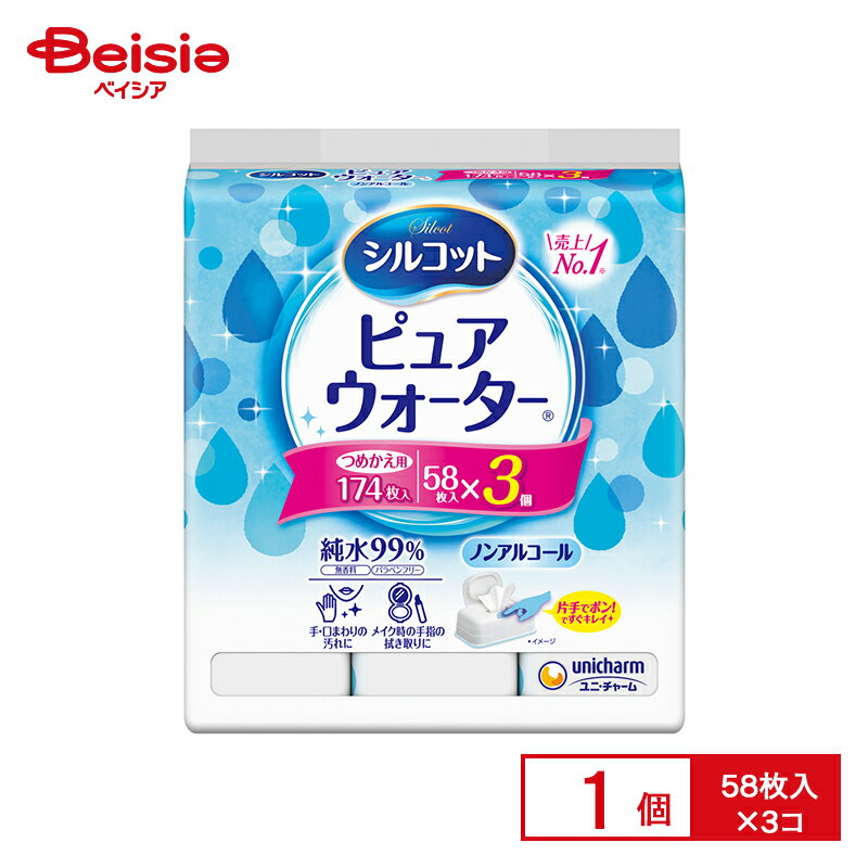 ユニ・チャーム シルコット ピュアウォーターウェットティッシュ 詰替 58枚×3 | ピュアウォータ・・・