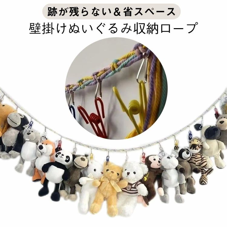 ぬいぐるみ 収納ロープ 吊り下げ収納 クリップ付き ディスプレイ