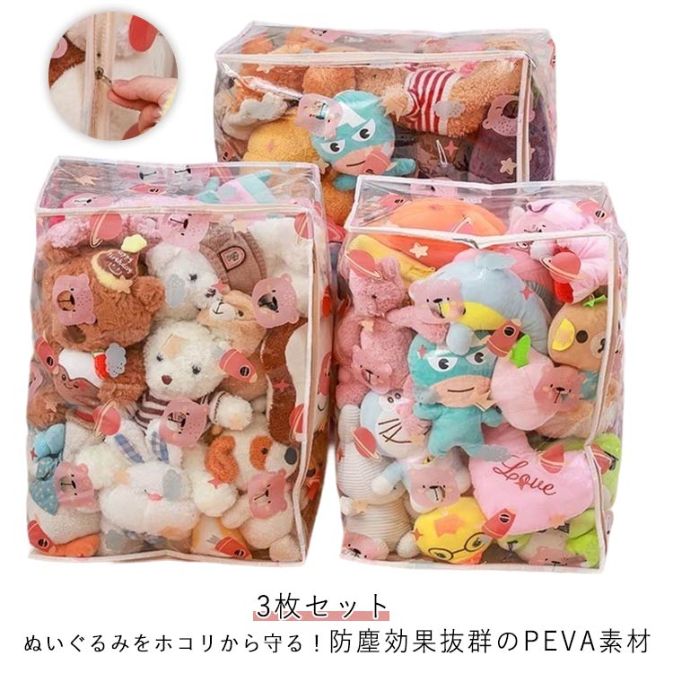 3枚セット ぬいぐるみ 収納 ぬいぐるみ入れ 布団 収納袋 ケース 透明 クリア おもちゃ 大容量 ・・・