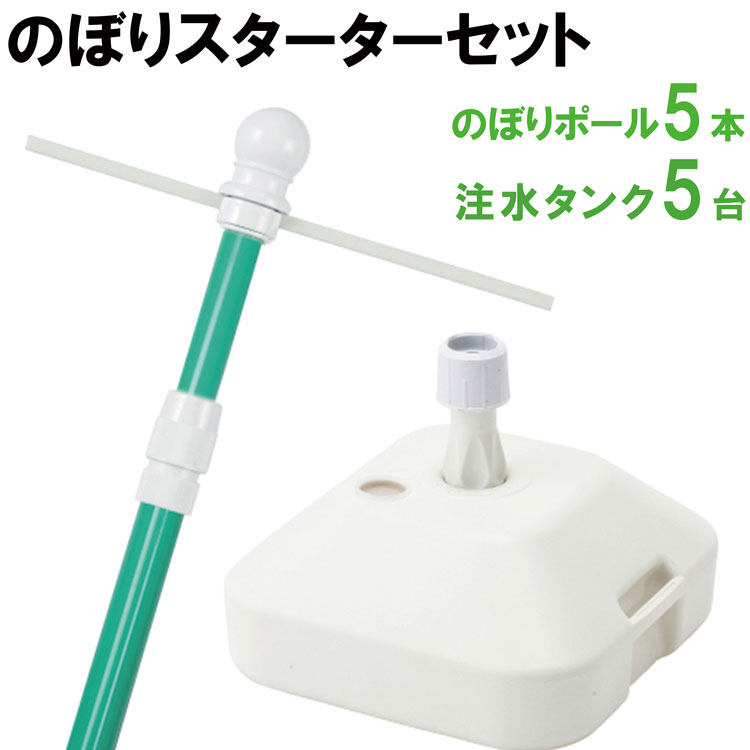 【送料込】のぼりスターターセット 2段伸縮スタイリッシュのぼりポール3M緑+SPタンク白 ポール5本・・・