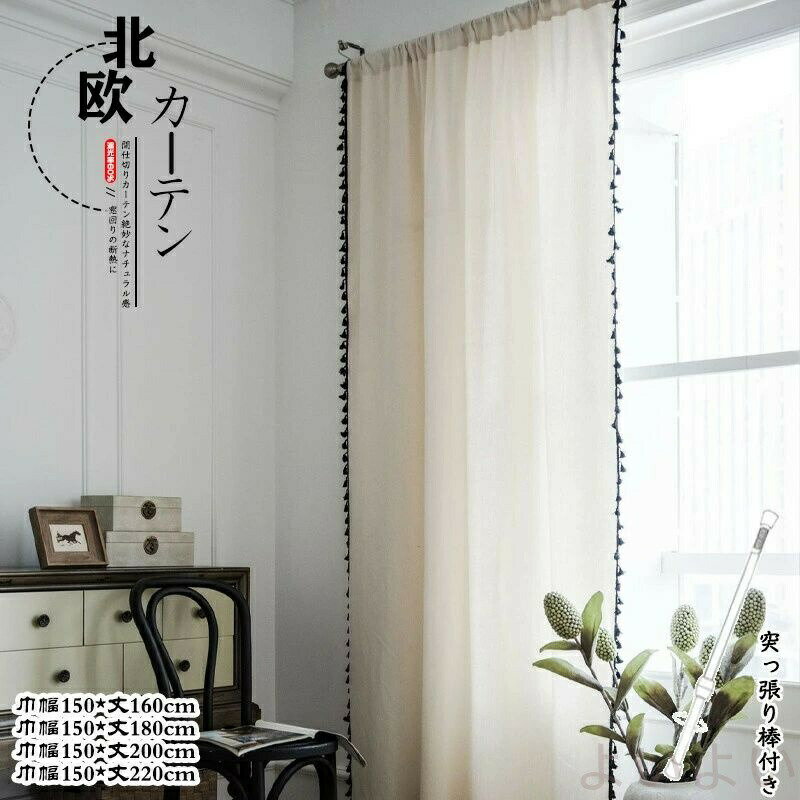 カーテン 間仕切り 綿麻 半分遮光 突っ張り棒付き ロング のれん 窓 ドア 仕切り おしゃれ 洗える ins風 簡約 寝室 居間 階段 遮断