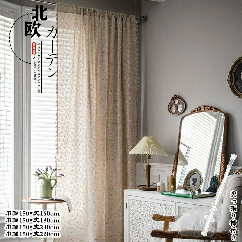 【送料無料】カーテン 間仕切り 突っ張り棒付き ロング のれん 綿麻 半分遮光 菊の花 おしゃれ i・・・