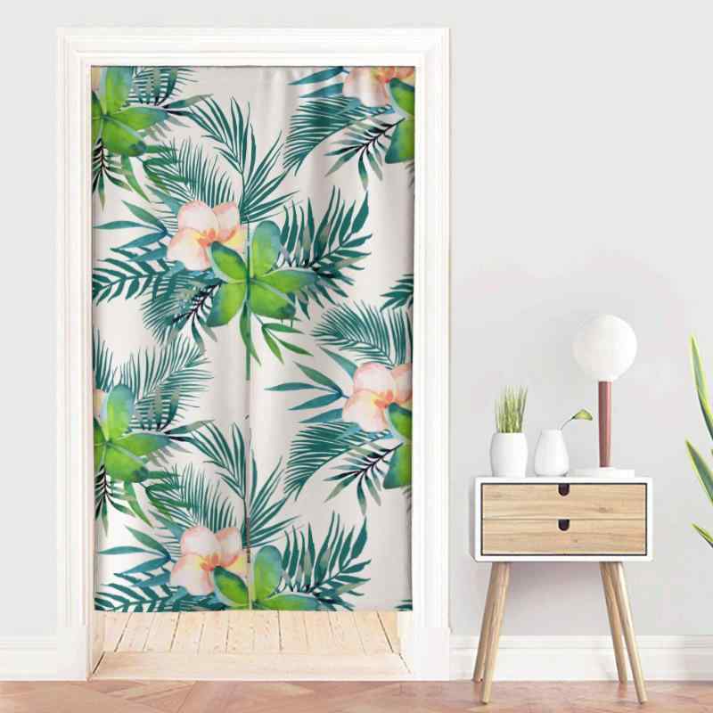 北欧暖簾 のれん モンステラ柄 植物柄 ハワイ 自然 カーテン 部屋仕切り タペストリー 雨林 ショート丈 目隠し 半遮光 モダン おしゃれ キッチン トイレ 店舗用寝室