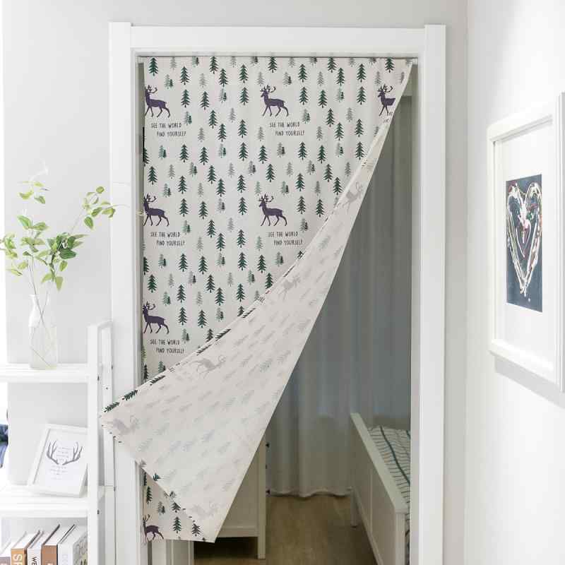 暖簾 韓国風 トナカイ クリスマスツリー柄 間仕切り ファブリック 麻混 半間のれん 目隠し ドアカ・・・