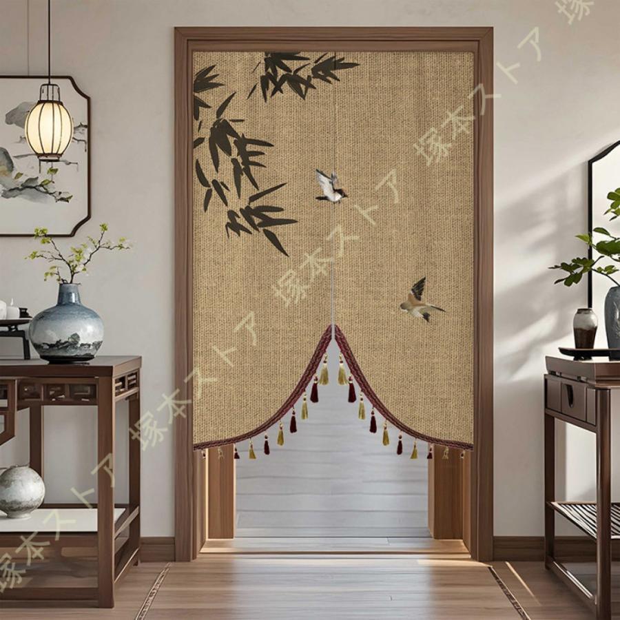 のれん 新中式 高級感 間仕切り 目隠し 麻風 植物柄デザイン おしゃれな変形タイプ リビング キッ・・・