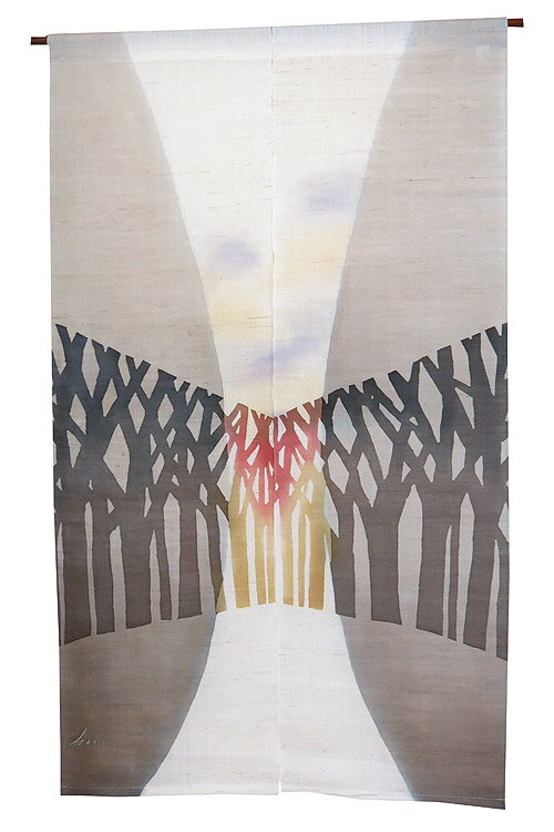 麻のれん・木立(手織り麻モダン おしゃれ のれん)受注製作 ロング 約 88×150cm・・・