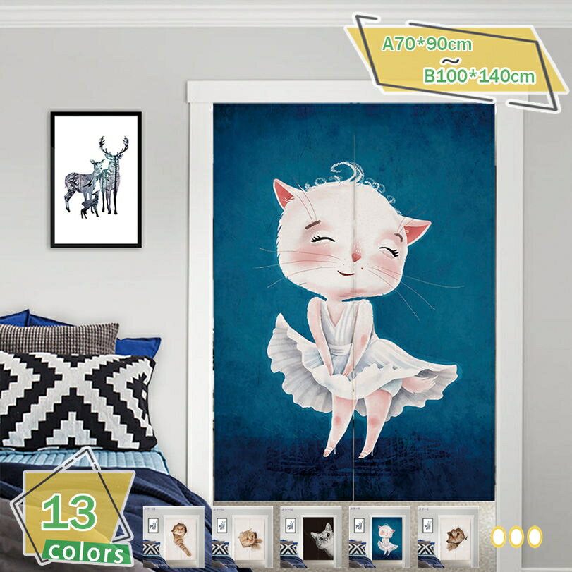 のれん 90cm丈 おしゃれ のれん 猫柄 間仕切り 爽やか 90*150cm ドアカーテン 壁飾り 北欧 100*150cm 冷暖房 和風暖簾 ロング暖簾 リビング 玄関 廊下 洗濯 着替え室 飲食店