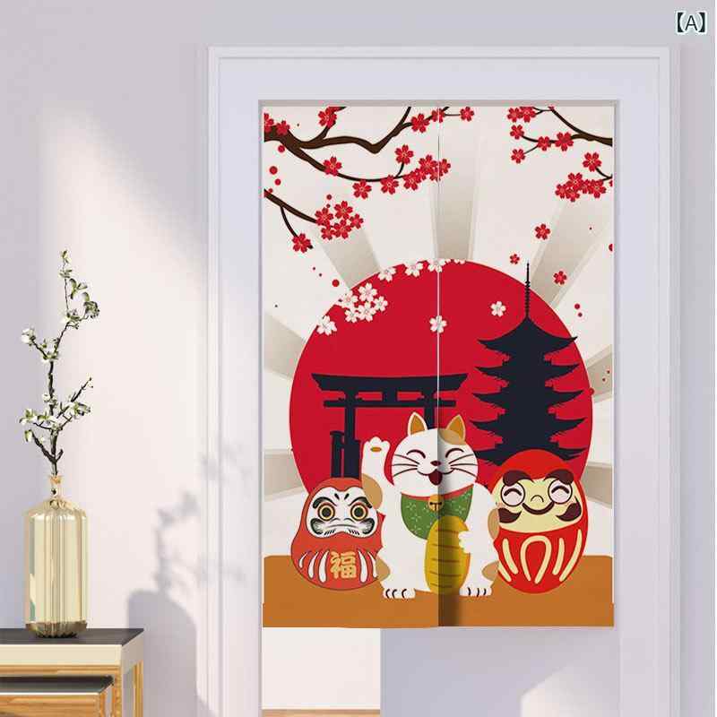 のれん 招き猫 和風 まねき猫 暖簾 間仕切り 目隠し カーテン つっぱり式 突っ張り棒 穴あけ不要・・・
