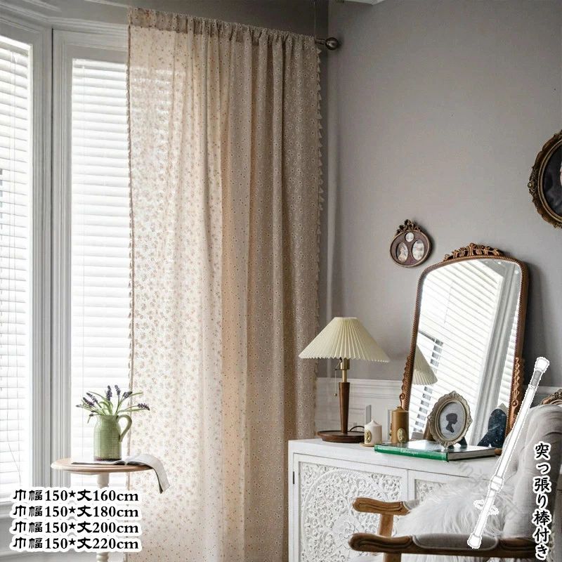カーテン 間仕切り 突っ張り棒付き ロング のれん 綿麻 半分遮光 菊の花柄 おしゃれ ins風 簡・・・