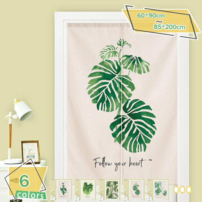 のれん 暖簾 ノレン 綿麻 インテリア デザイン 簡約 北欧 シンプル モダン 植物 爽やか 目隠し 間仕切り 玄関 和室 洋室 キッチン リビング マンション 賃貸部屋 洗面所 寝室 小窓用