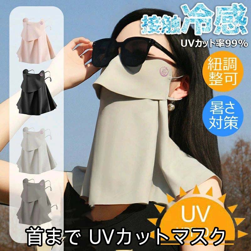 UVカットマスク 夏 フェイスカバー ネックガード 接触冷感 360°紫外線対策 UPF50+ テニス 大きめ 首 日焼け防止 UVカット 耳掛け ひんやり スカーフ 吸汗速乾 通気性 フェイスマスク