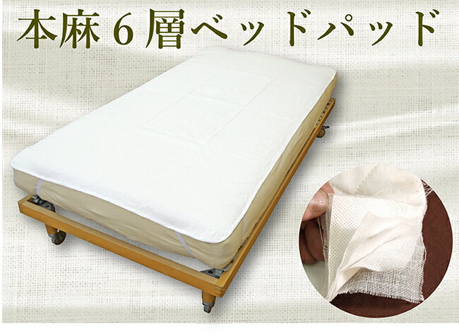 ひんやり寝具 本麻 ガーゼ6層ベッドパッド セミダブルサイズ 幅120cm・・・
