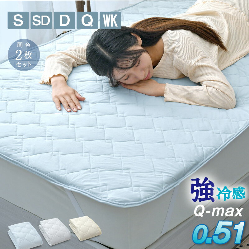 敷きパッド 同色2枚 シングル セミダブル ダブル クイーン ワイドキング 冷感 Q-max0.5 ・・・