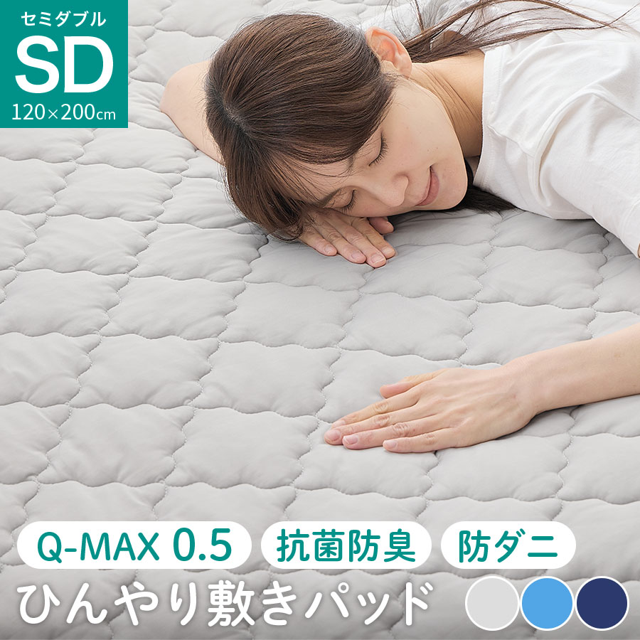 Q-MAX0.5 敷パット セミダブルサイズ さらさら クール 洗える 灰色 水色 紺色 無地 夏 ・・・