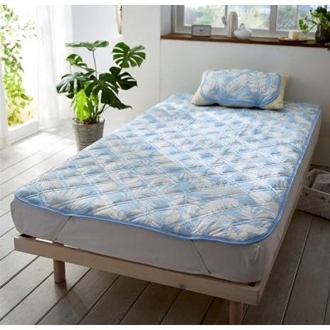 セミダブルサイズ 弱冷感タイプ リーフ柄敷きパッド 敷きパッド ひんやり パッドシーツ ベッド・敷布・・・