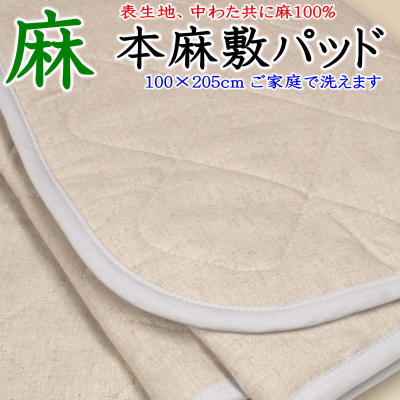 本麻敷きパッド 100×205cm 日本製 表生地、中わた共に本麻100% 【関連ワード 本麻・・・