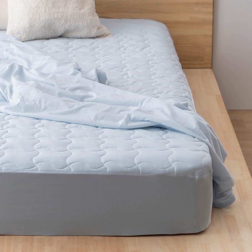 キリッと冷たく、サラッと爽やか。真夏の眠りのクールな相棒。冷感・除湿力・通気性を持つ3層構造の敷きパッドです。