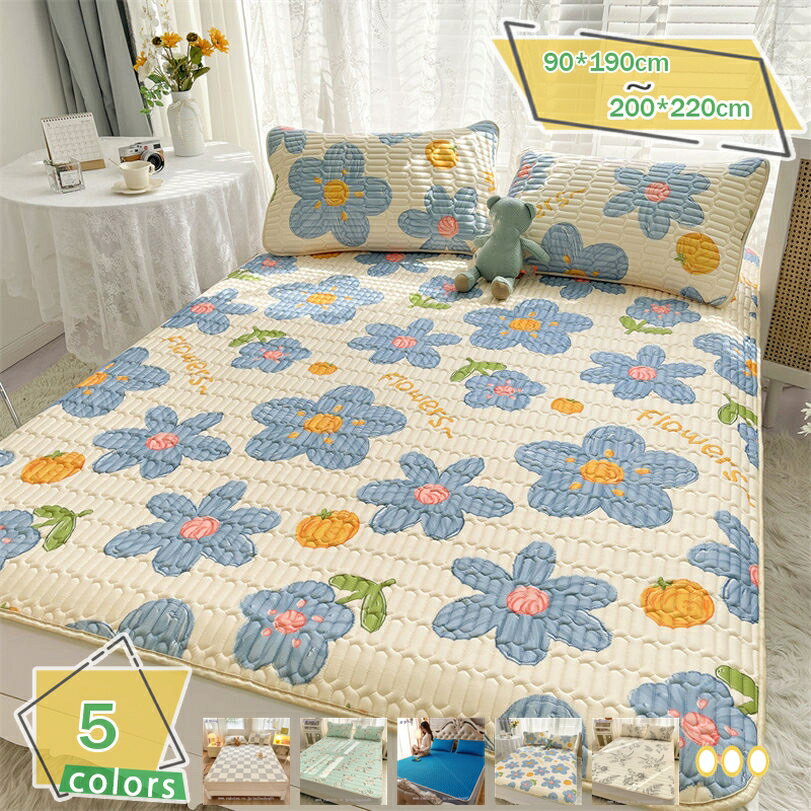 敷きパット 枕カバー2枚付き マットレスカバー 洗いやすい 洗濯