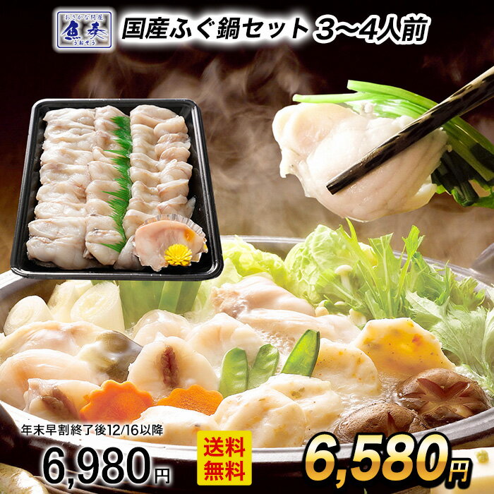 【早割★12/16 10時まで!】ふぐ フグ 河豚 ふぐ鍋 セット 3〜4人前 てっちり 天然ふぐ ・・・