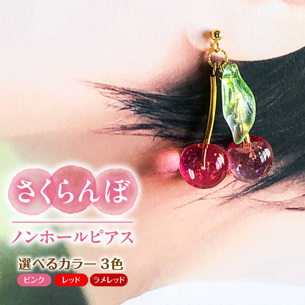【ふるさと納税】【選べるカラー】さくらんぼ ノンホールピアス アクセサリー ハンドメイド レジン 愛・・・