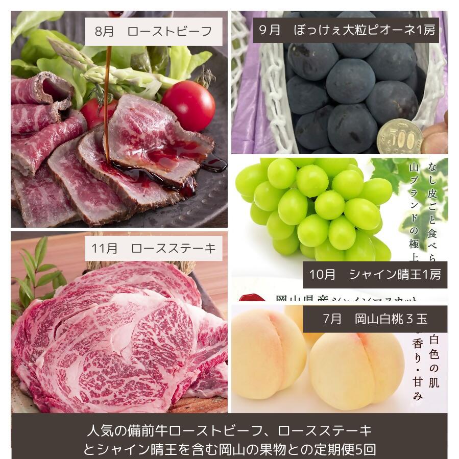 ee-107【令和8年発送・先行予約】岡山の美味しい果物と備前黒毛牛の全5回定期便B・・・