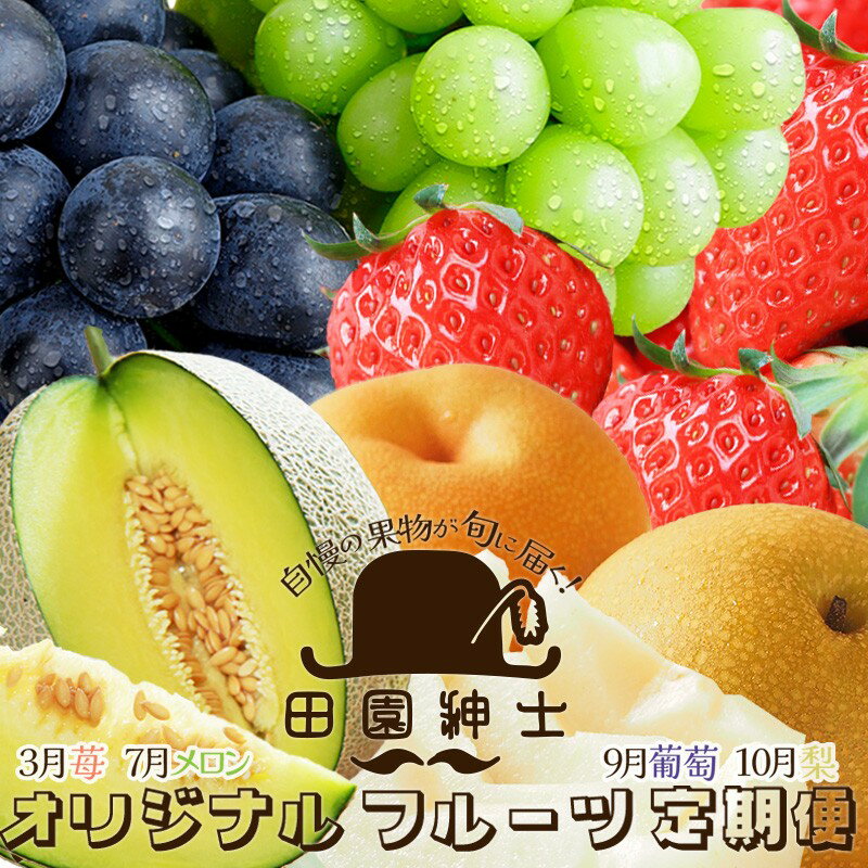 【ふるさと納税】田園紳士厳選 オリジナルフルーツ定期便4回【イチゴ、メロン、黒葡萄、シャインマスカッ・・・
