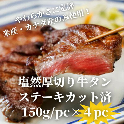 【ふるさと納税】塩然厚切り牛タンステーキ カット済み(150g/pc×4pc)【配送不可地域:離島】・・・