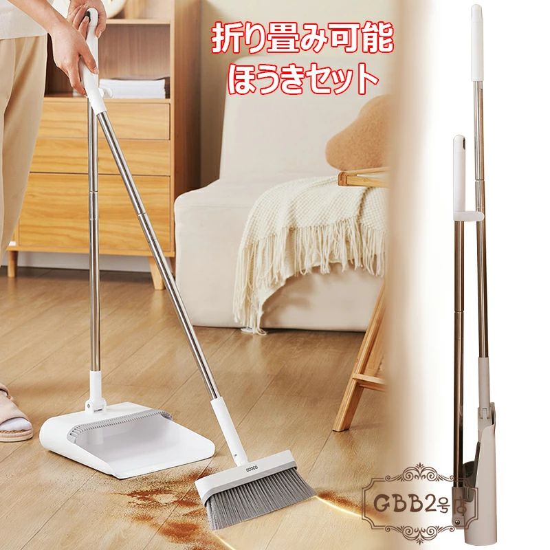 ほうき ちりとりセット 立て式掃除セット 長さ箒 折りたたみ収納