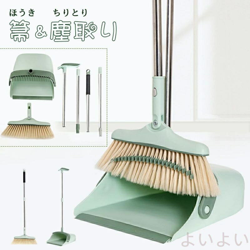 【送料無料】自立タイプ 箒 塵取り ほうき ちりとり セット 掃除セット おしゃれ 防風式 収納可能・・・