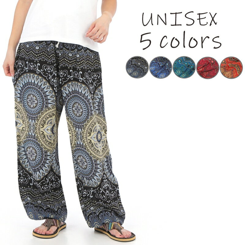 【送料無料】同柄紐 大判 曼荼羅柄 ストレート タイパンツ アラジンパンツ メンズ レーヨン タイ ・・・