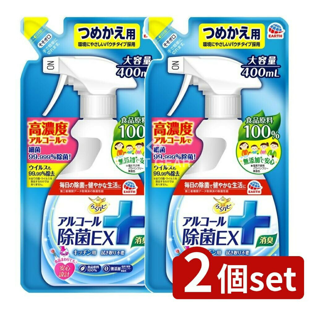 【単品2個セット】らくハピ アルコール除菌EX 詰替え 400ml アース製薬
