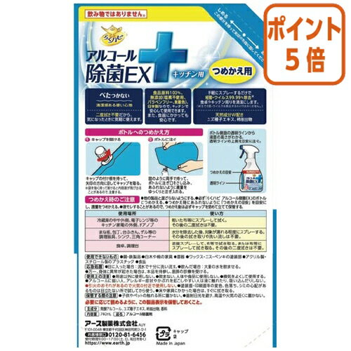 アース製薬らくハピアルコール除菌EXつめかえ400ML 住居洗剤 キッチン・・・