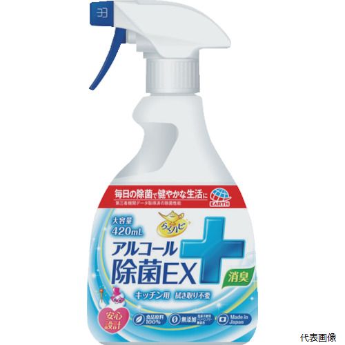 らくハピ アルコール除菌EX+消臭 キッチン用 420ml[除菌 キッチン用] 食品原料100%・無添加!手軽にスプレーするだけで細菌・ウイルス99.99%除去