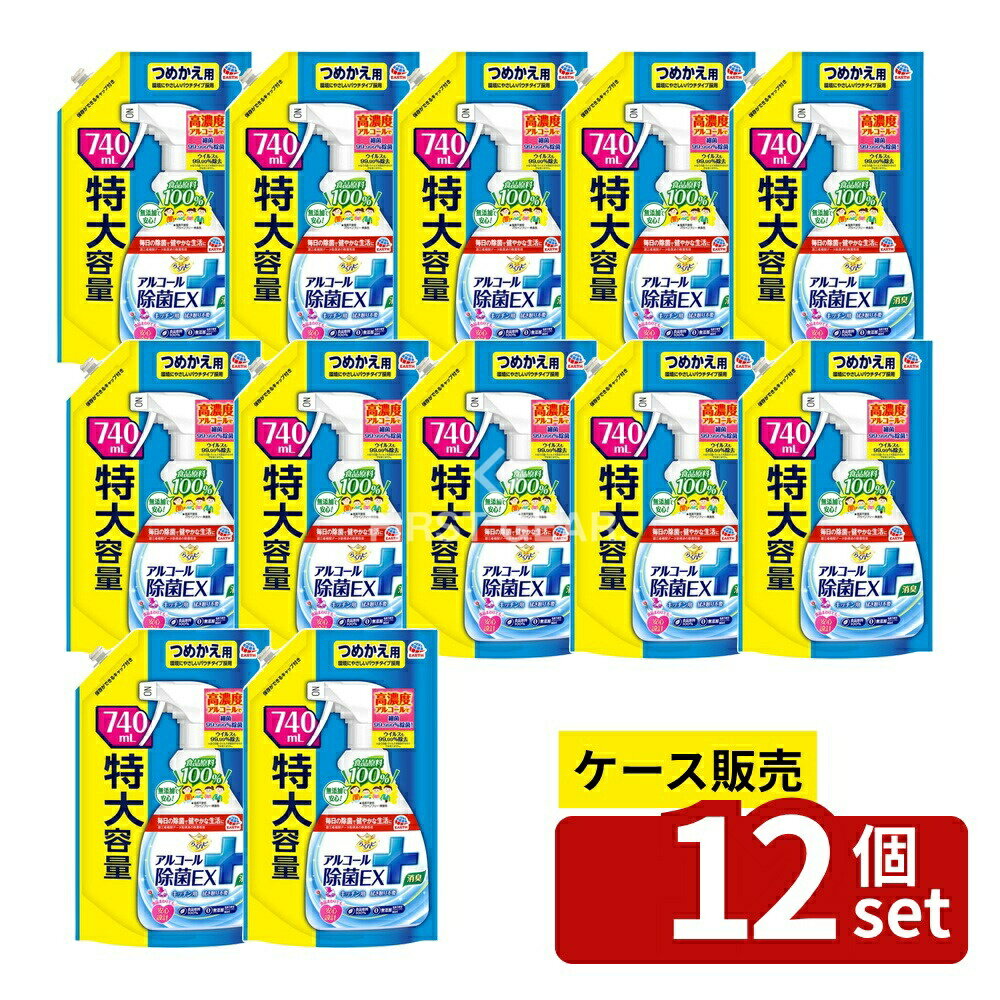 【送料無料】【単品12個セット】らくハピ アルコール除菌EX つめかえ 740mL アース製薬