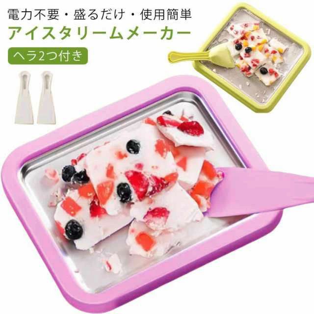 電気不要!アイスクリームメーカー ヘラ2本付 シャーベットメーカー ステンレス製 パーティー用 ヨーグルトフライ機 ロールアイスクリー