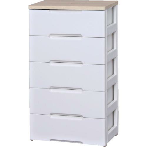 IRIS 250131 ウッドトップチェスト 5段 ホワイト/ペアー ( HG-555-WH ) ア・・・