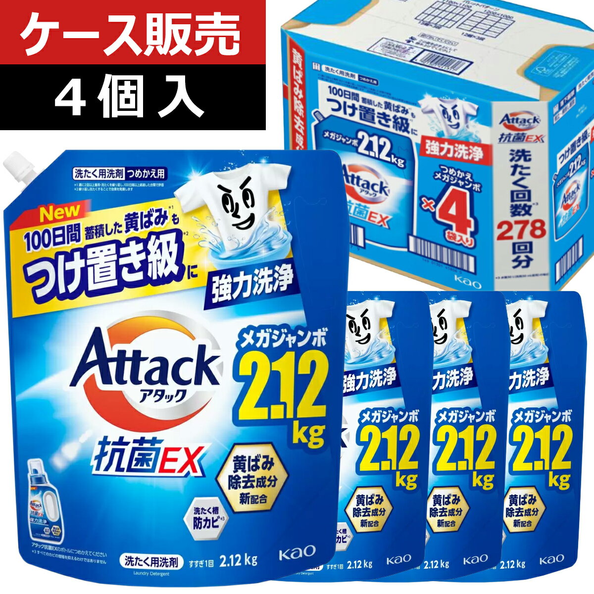 【ケース販売】 アタック抗菌EX つめかえ用 2120g 4袋セット 詰替 大容量 洗濯洗剤 液体洗・・・