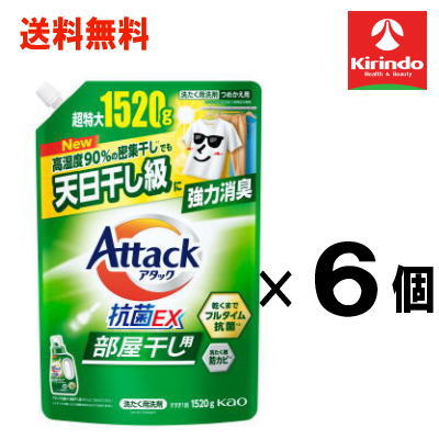 花王ケース販売 送料無料 6個セットアタック抗菌EX 部屋干し用 つめかえ用1520g×6個(1ケー・・・
