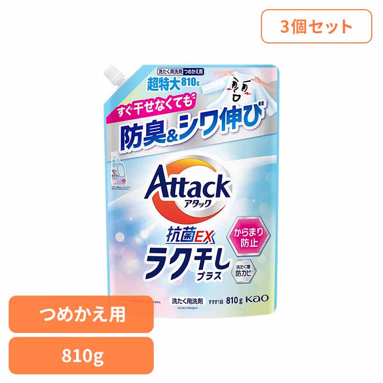 3個】アタック抗菌EX ラク干し つめかえ用 810g 洗剤 アタック 液体洗剤 詰め替え 洗濯 抗・・・