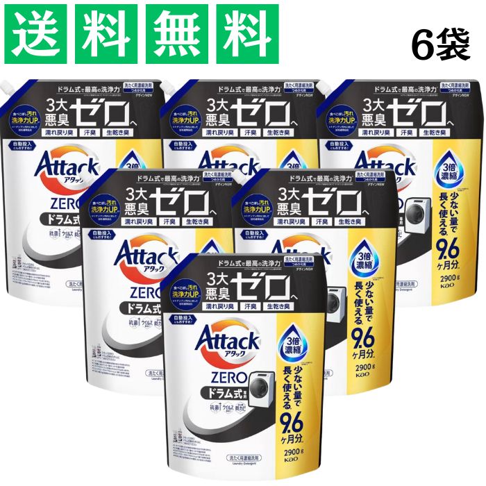 アタックZERO ドラム式専用 2900g 6袋 詰め替え ドラム式 抗菌 プラス ウイルス除去 洗・・・
