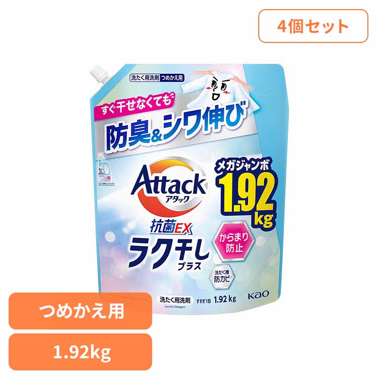 4個】アタック抗菌EX ラク干しプラス つめかえ用 1920g 洗剤 アタック 液体洗剤 詰め替え ・・・