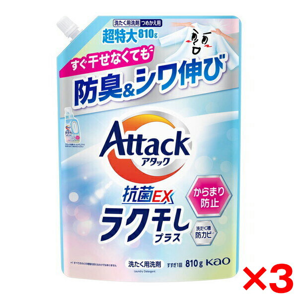 3個】アタック抗菌EX ラク干し つめかえ用 810g 洗剤 アタック 液体洗剤 詰め替え 洗濯 抗・・・