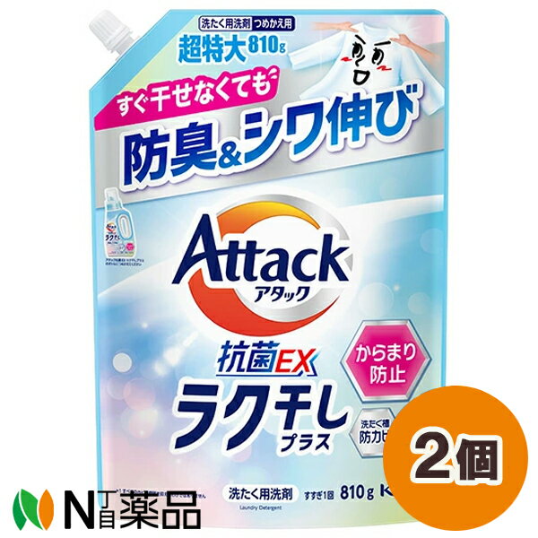 花王 アタック 抗菌EX ラク干しプラス つめかえ用 (810g) 2個セット <洗濯洗剤 からまり・・・