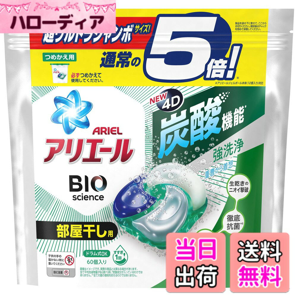 【送料無料】アリエール ジェルボール4D 炭酸機能でハジける洗浄力 部屋干し用 部屋干しでも爽やかな・・・