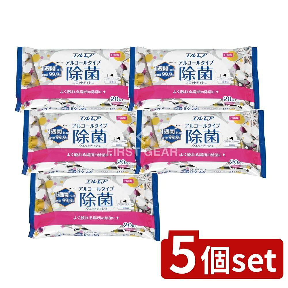 \レビュー特典有/【5個セット】 カミ商事 エルモア除菌99.9%アルコール [単品内容量/20枚]・・・