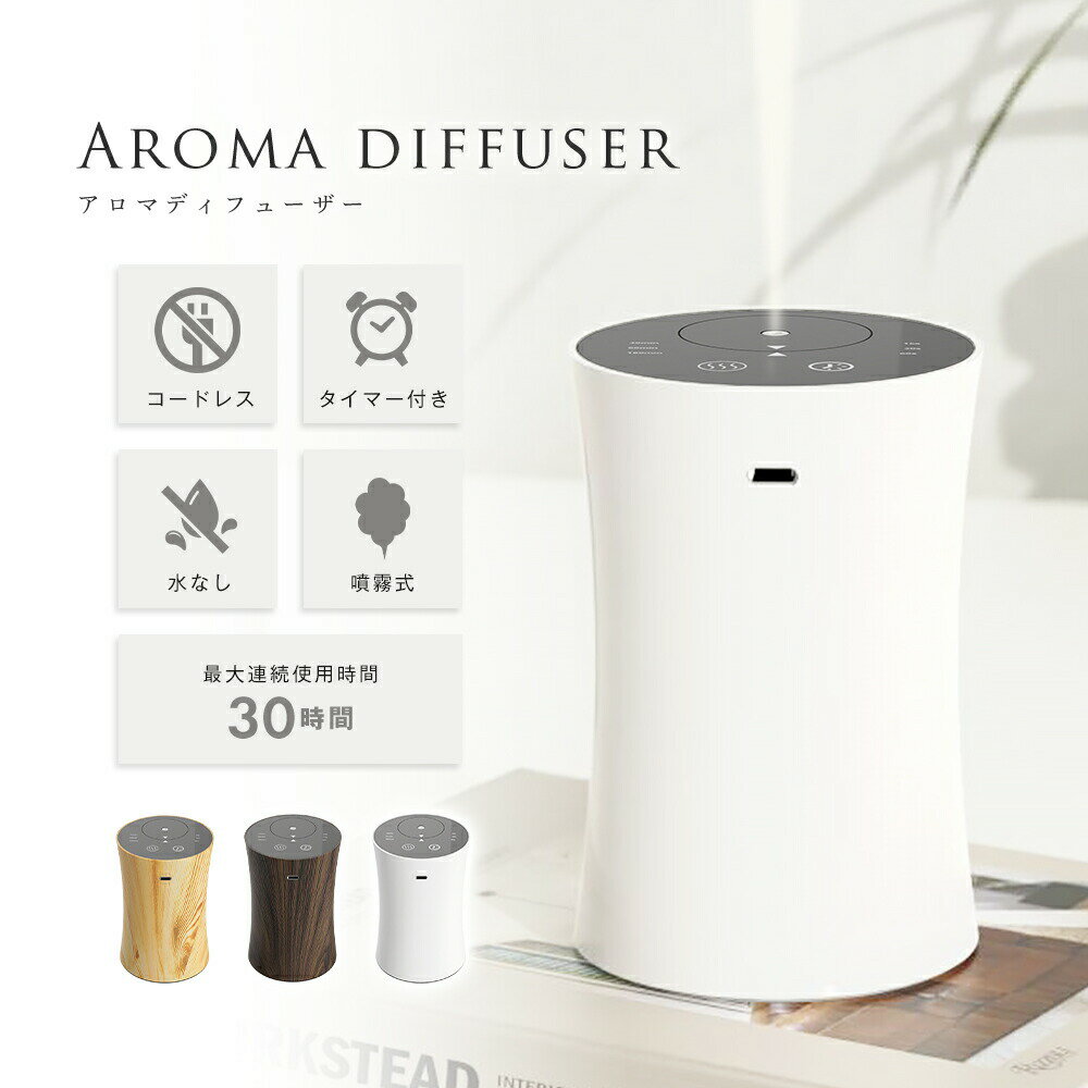 アロマディフューザー 水なし コードレス USB充電式 ネブライザー 水を使わない 木目調 車用 ア・・・