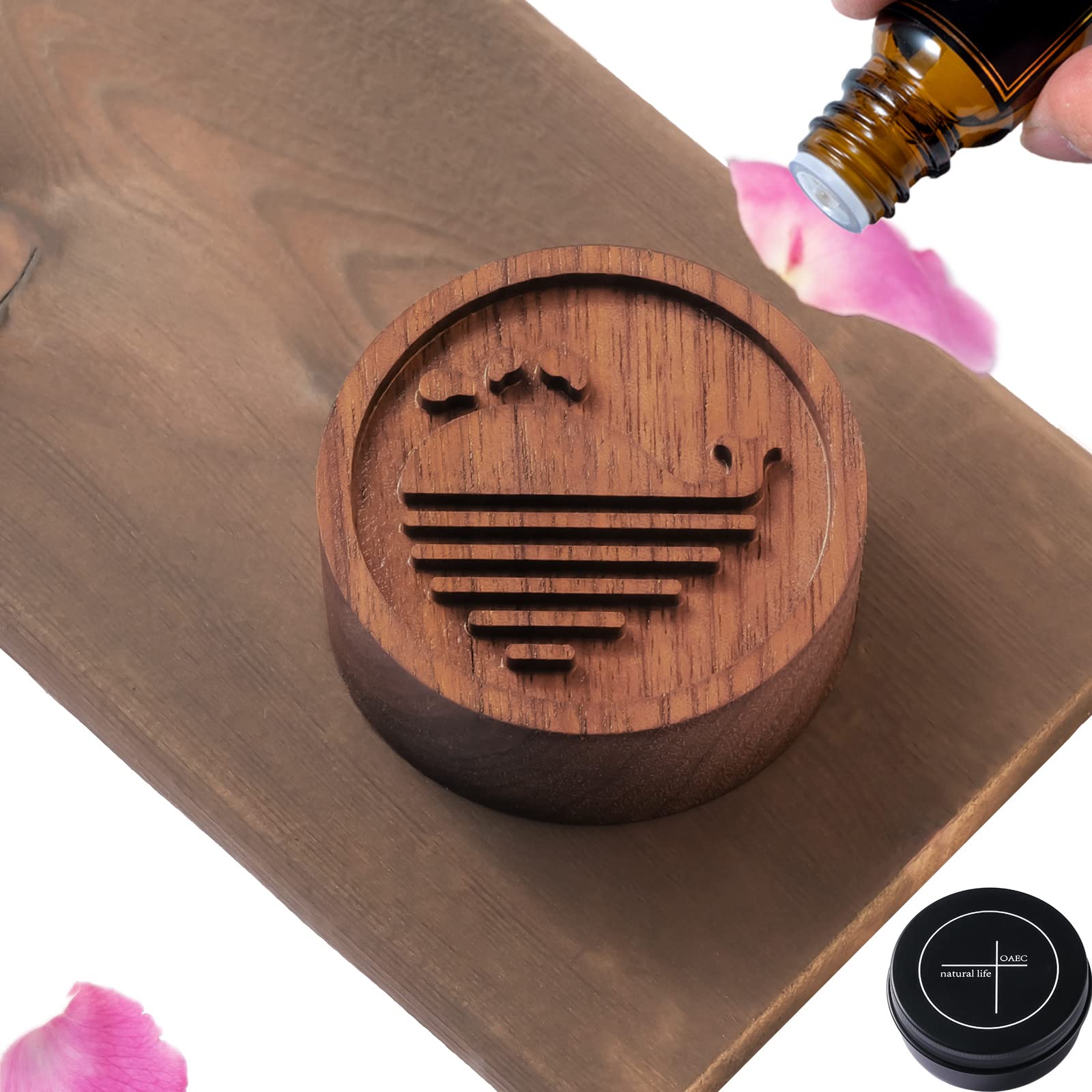 Oaec アロマストーン 木製 アロマディッシュ 缶入り 黒胡桃 直径50mm x 高さ20mm 車・・・
