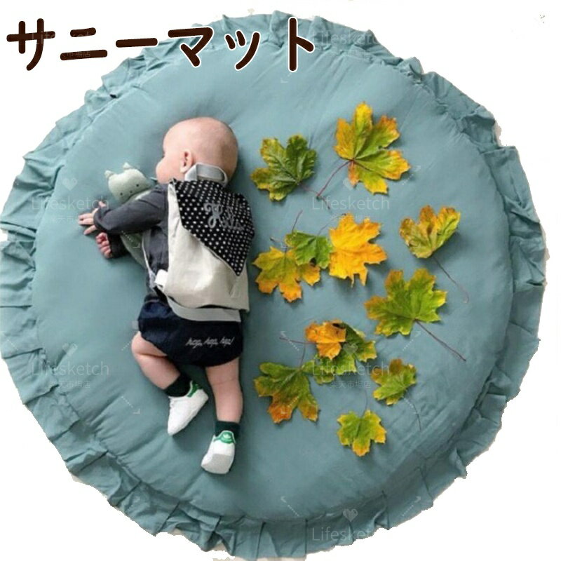 サニーマット 送料無料 中綿 可愛いフリル付き ラウンドマット ベビーマット 赤ちゃん ins風 ラ・・・